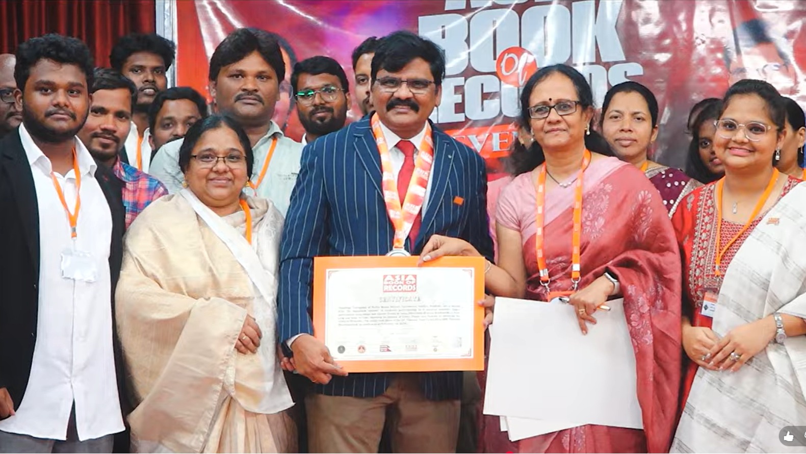 The achievement was adjudicated and officially confirmed by Dr. Vasudha Ashok on behalf of the Asia Book of Records, who presented the official certificate and medal to the organizers.